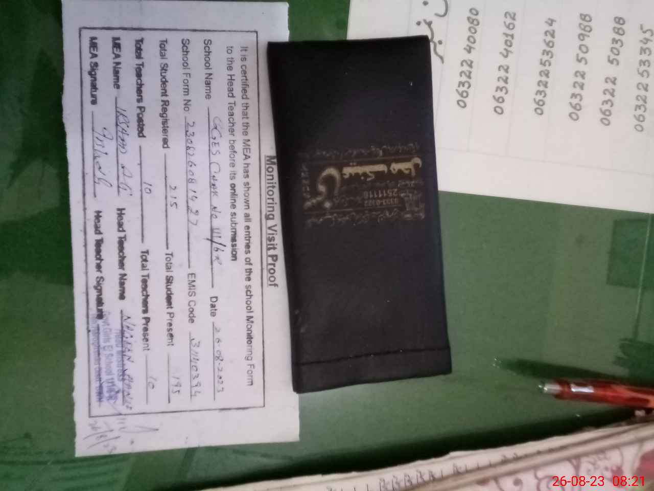 | Attendance Register | Head Teacher | MEA with School | Visit Proof |
