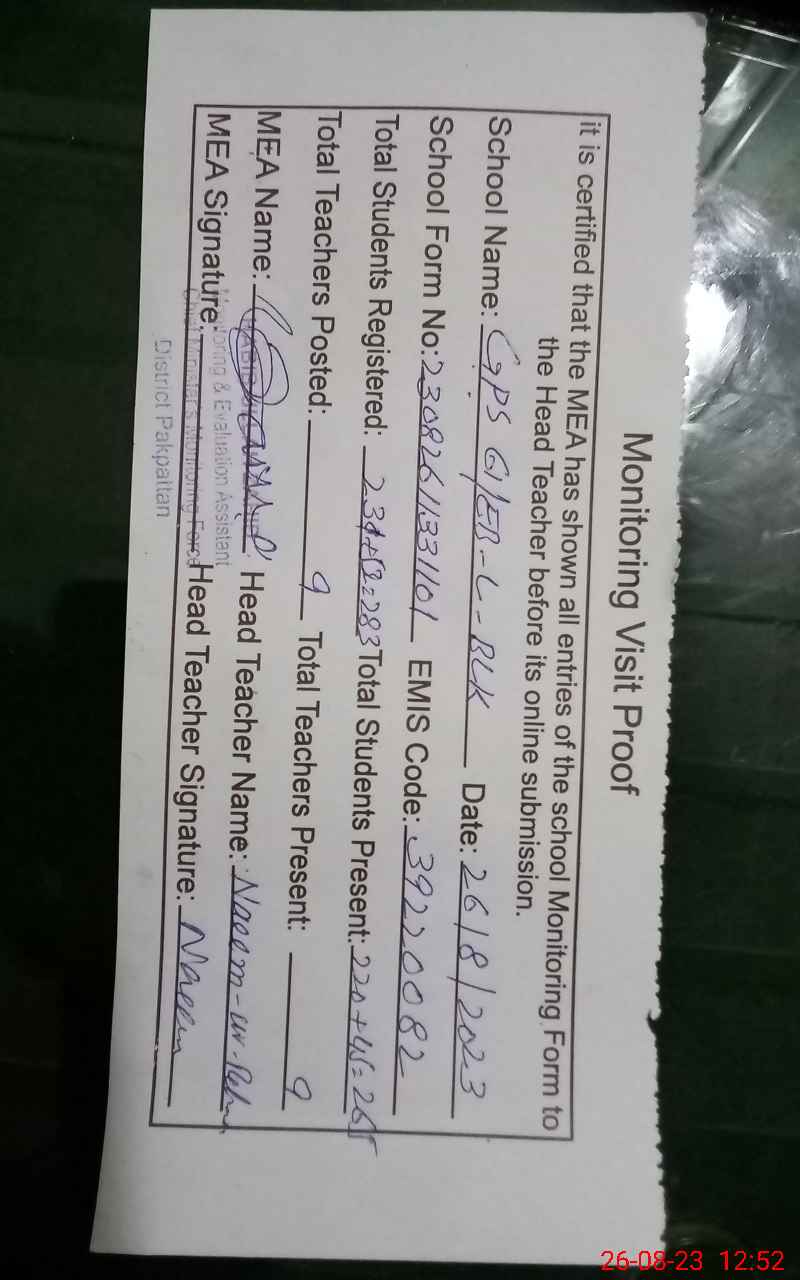 | Certified that this School was Inspected by the Undersigned MEA/DMO Today and the Information Stated Above is as Per Record. | |||||