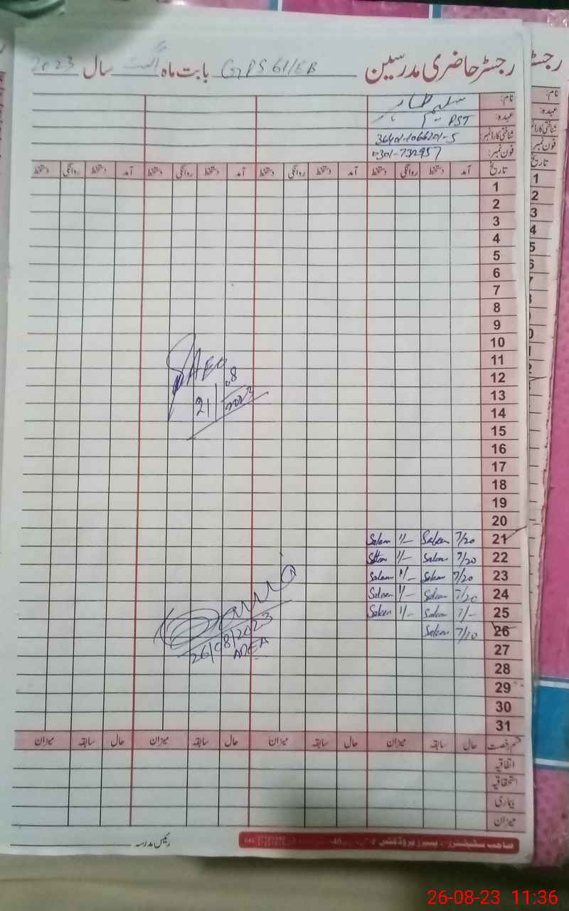 | Name: NA**** Designation: (School Headmaster's/Headmistress's) PST Phone/Cell Number: 03**** |