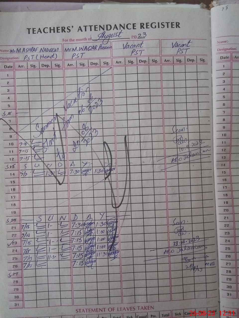 | Name: M.AS**** Designation: (School Headmaster's/Headmistress's) PST Phone/Cell Number: 03**** |