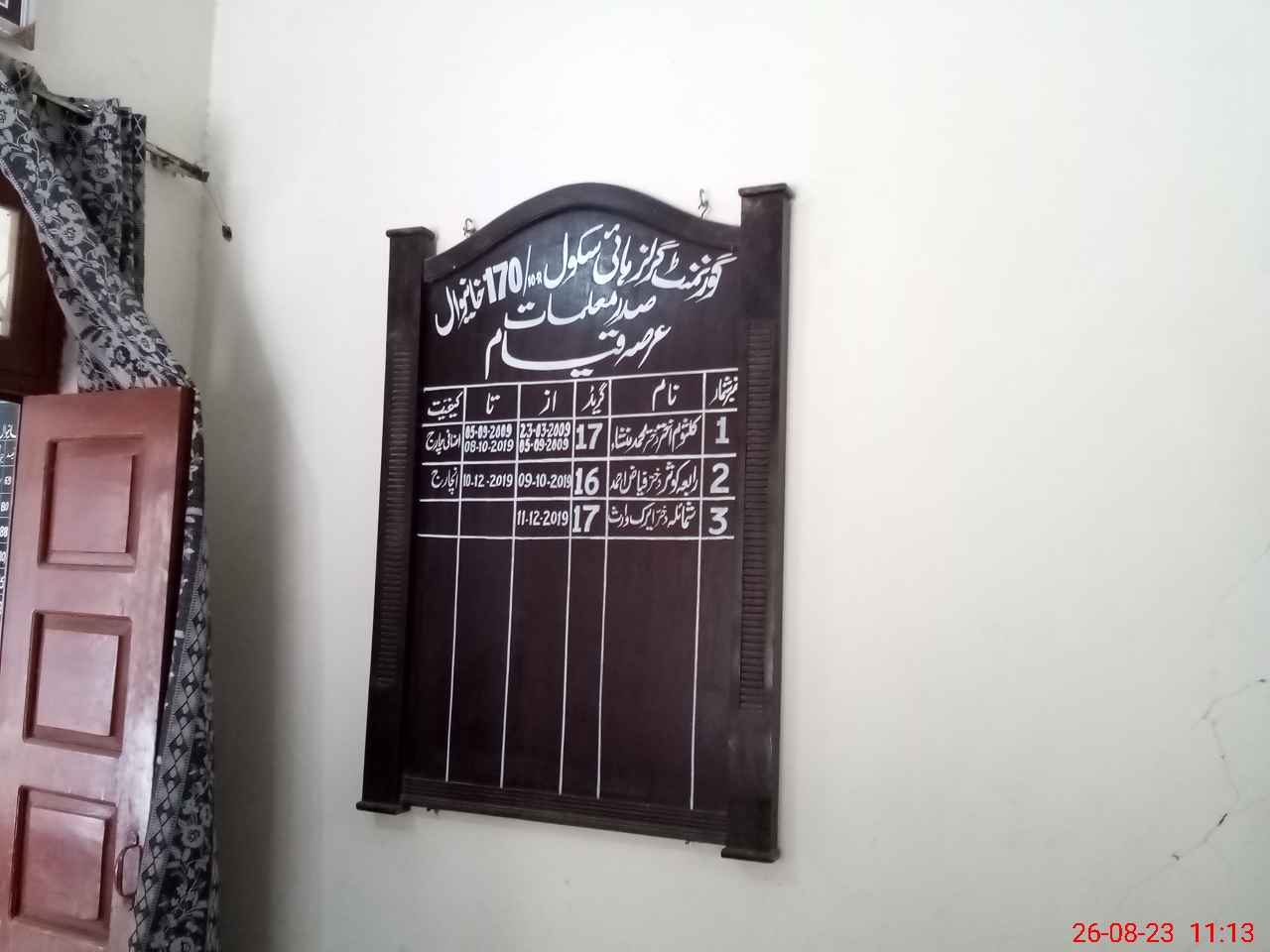| Name: Sh**** Er**** Wa**** Designation: (School Headmaster's/Headmistress's) Head Mistress Phone/Cell Number: 03**** |