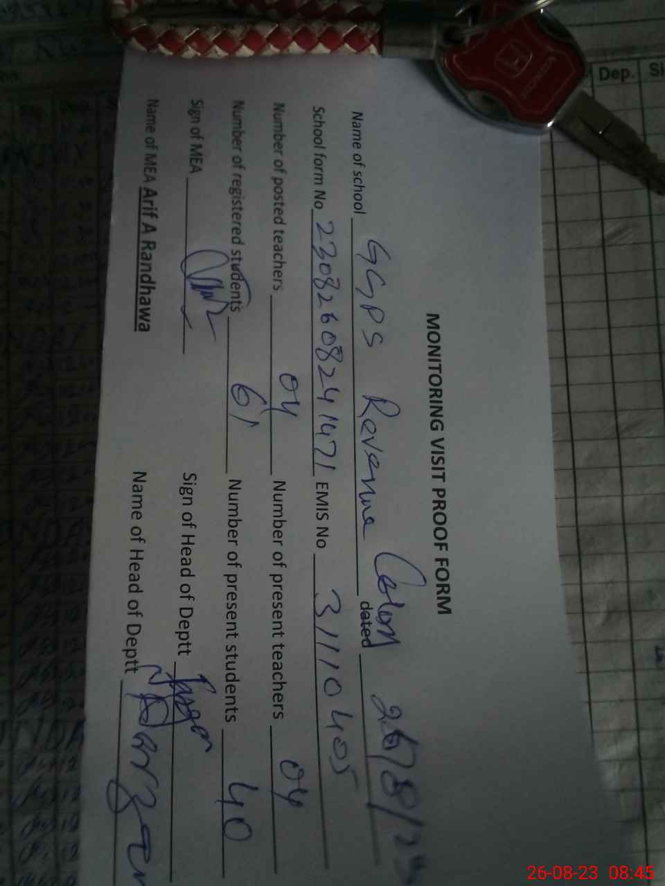 | EMIS Code: 31110405 | Name of School: GGPS REVENUE COLONY | |||