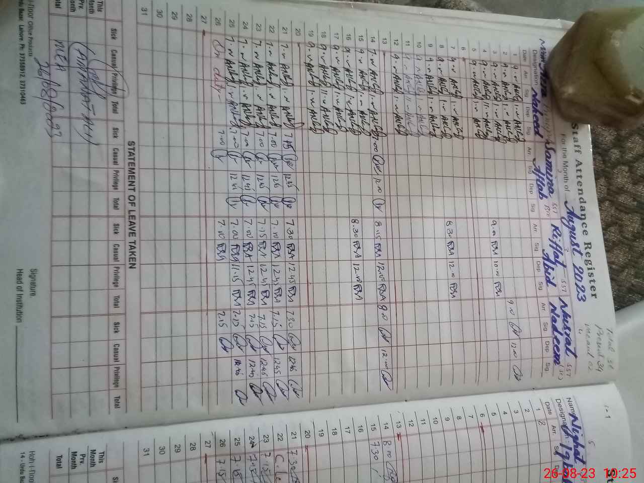 | Name: AZ**** NA**** Designation: (School Headmaster's/Headmistress's) PRINCIPAL Phone/Cell Number: 03**** |