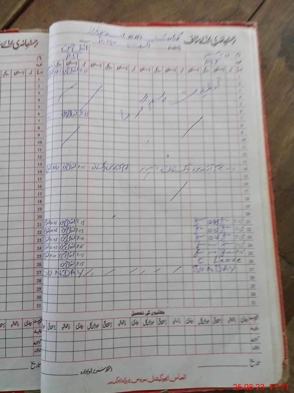 | CNIC | Full Name | Designation | R/C | Absence During Last Calender Month |