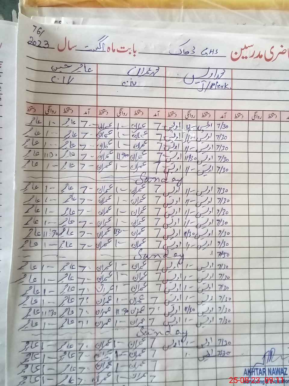 | CNIC | Full Name | Designation | R/C | Absence During Last Calender Month |