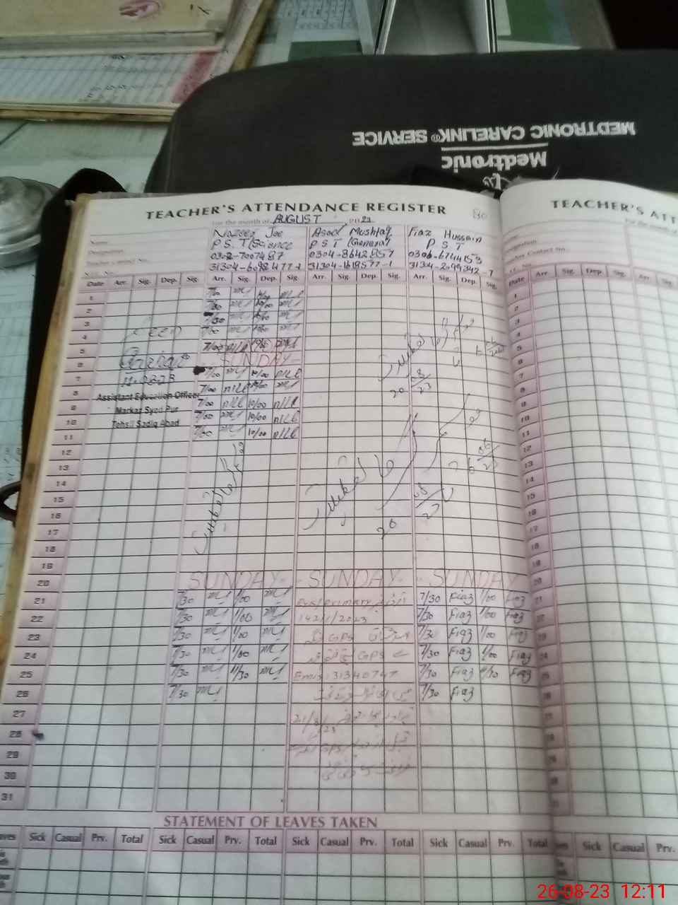 | Monitoring Date: 26-08-2023 | Start Time: 26-08-2023 11:50 AM | End Time: 26-08-2023 12:27 PM | Name of MEA: Mu**** Iz**** UlHa**** | |