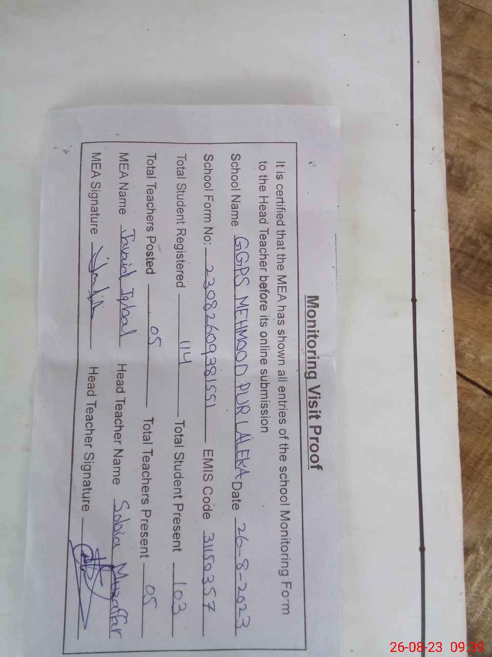 | EMIS Code: 31150357 | Name of School: GGPS MEHMOOD PUR LALAKEKA | |||