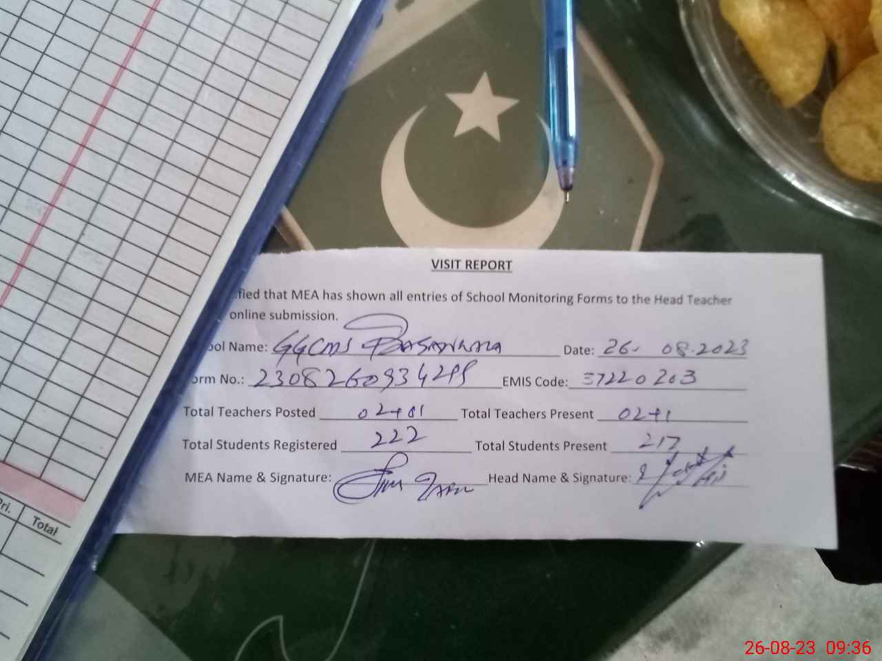 | Attendance Register | Head Teacher | MEA with School | Visit Proof |