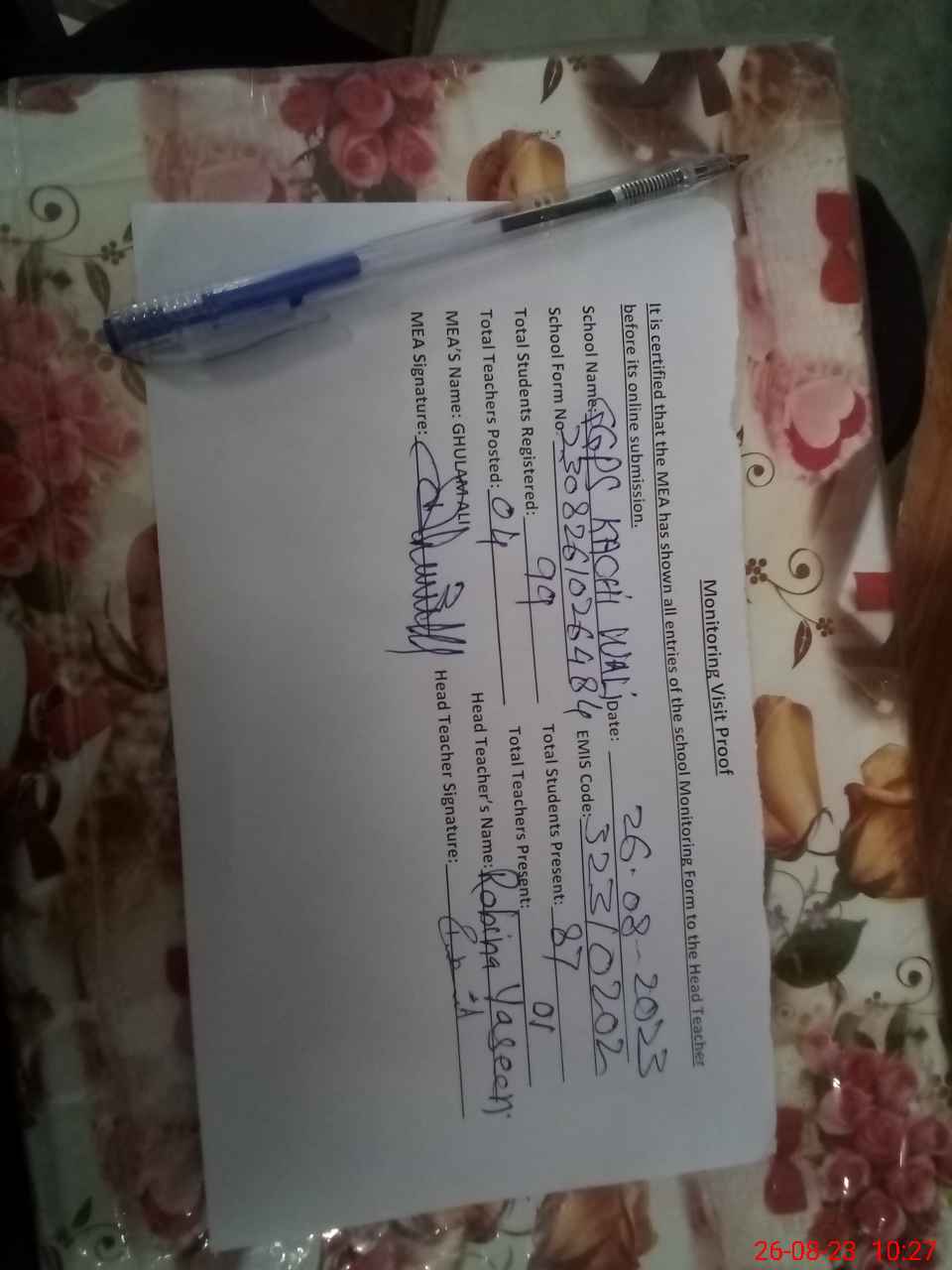 | EMIS Code: 32310202 | Name of School: GGPS KACHI WALI | |||