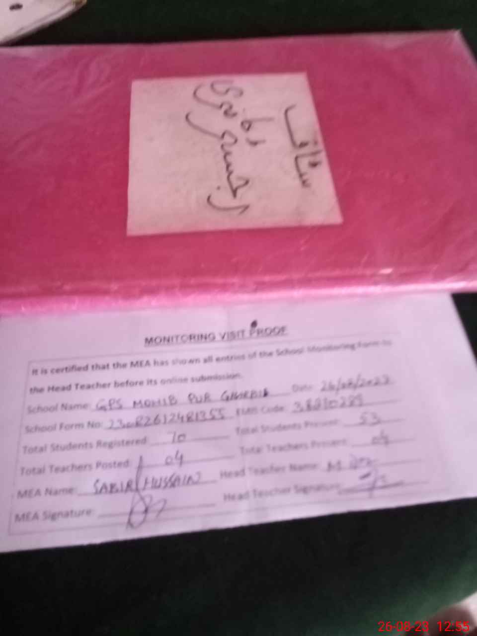 | EMIS Code: 38210289 | Name of School: GPS MUHIB PUR GHARBI | |||