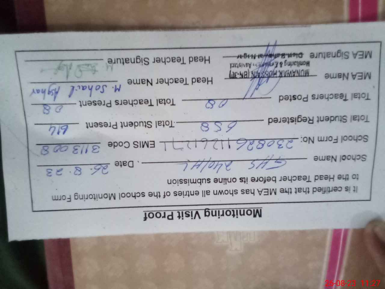 | Name: A.**** Designation: (School Headmaster's/Headmistress's) SST Phone/Cell Number: 03**** |