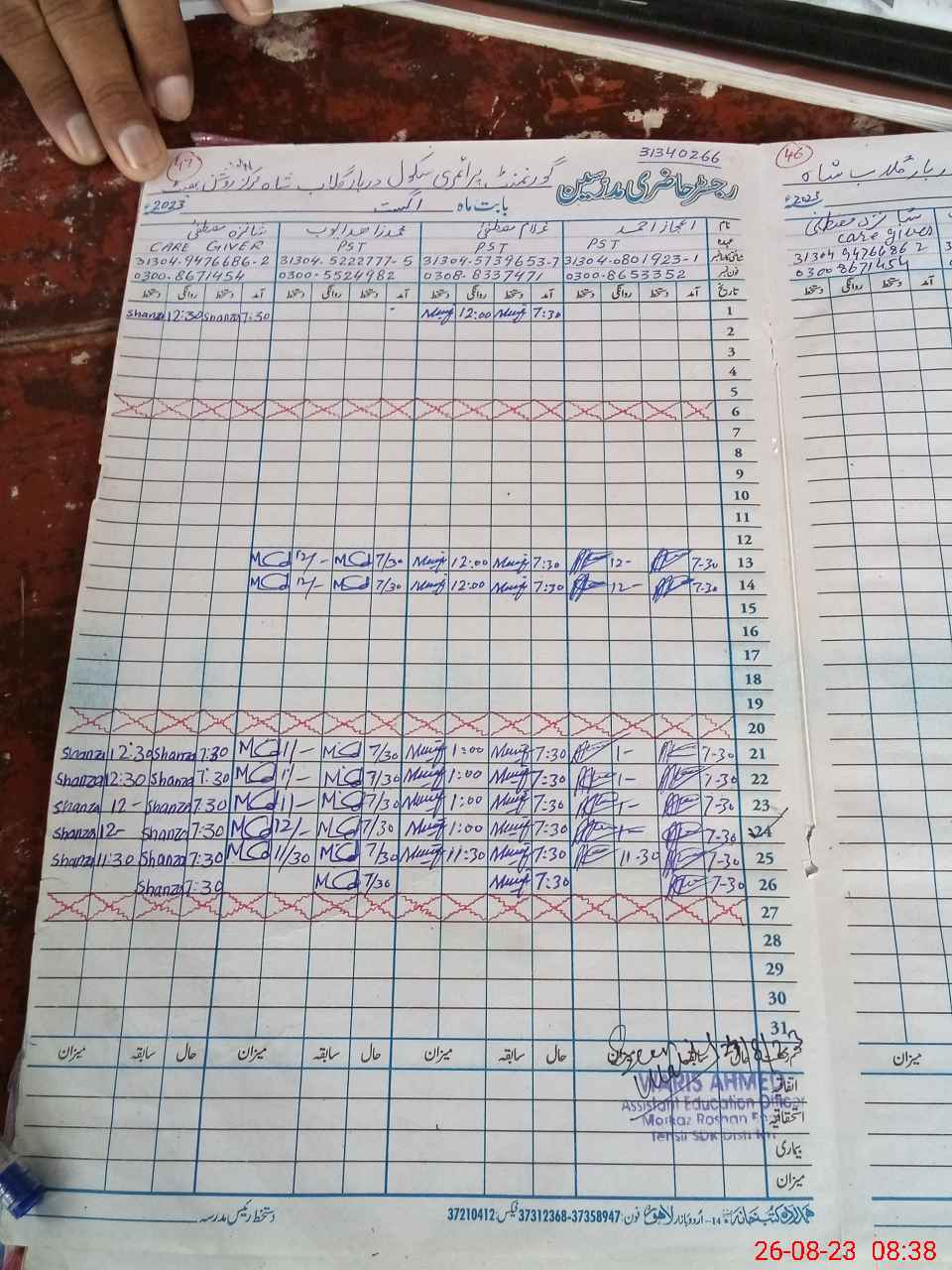 | Name: Mu**** Za**** Ay**** Designation: (School Headmaster's/Headmistress's) PST Phone/Cell Number: 03**** |