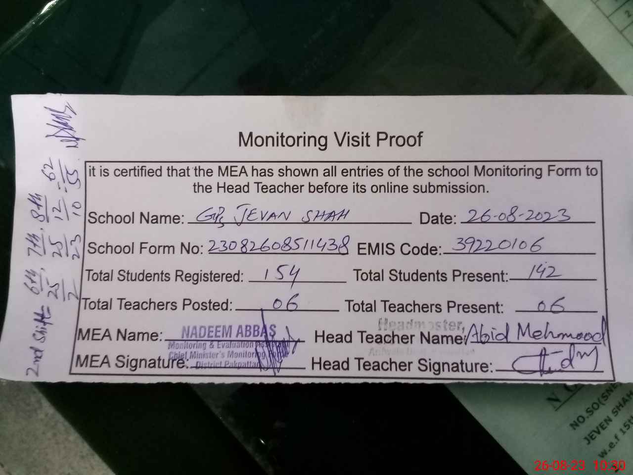 | EMIS Code: 39220106 | Name of School: GPS JEVEN SHAH | |||