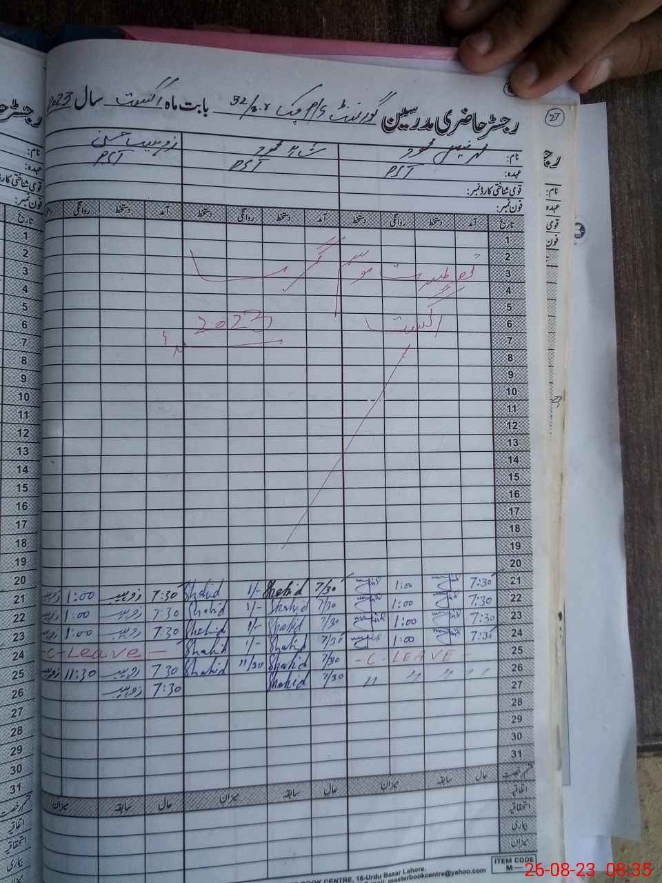 | CNIC | Full Name | Designation | R/C | Absence During Last Calender Month |