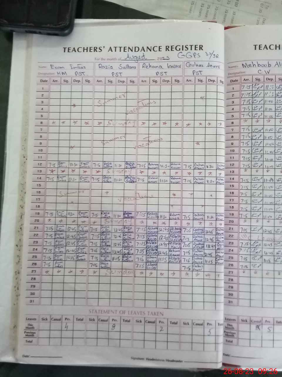 | Monitoring Date: 26-08-2023 | Start Time: 26-08-2023 09:09 AM | End Time: 26-08-2023 09:31 AM | Name of MEA: Ab**** Ra**** BN**** | |