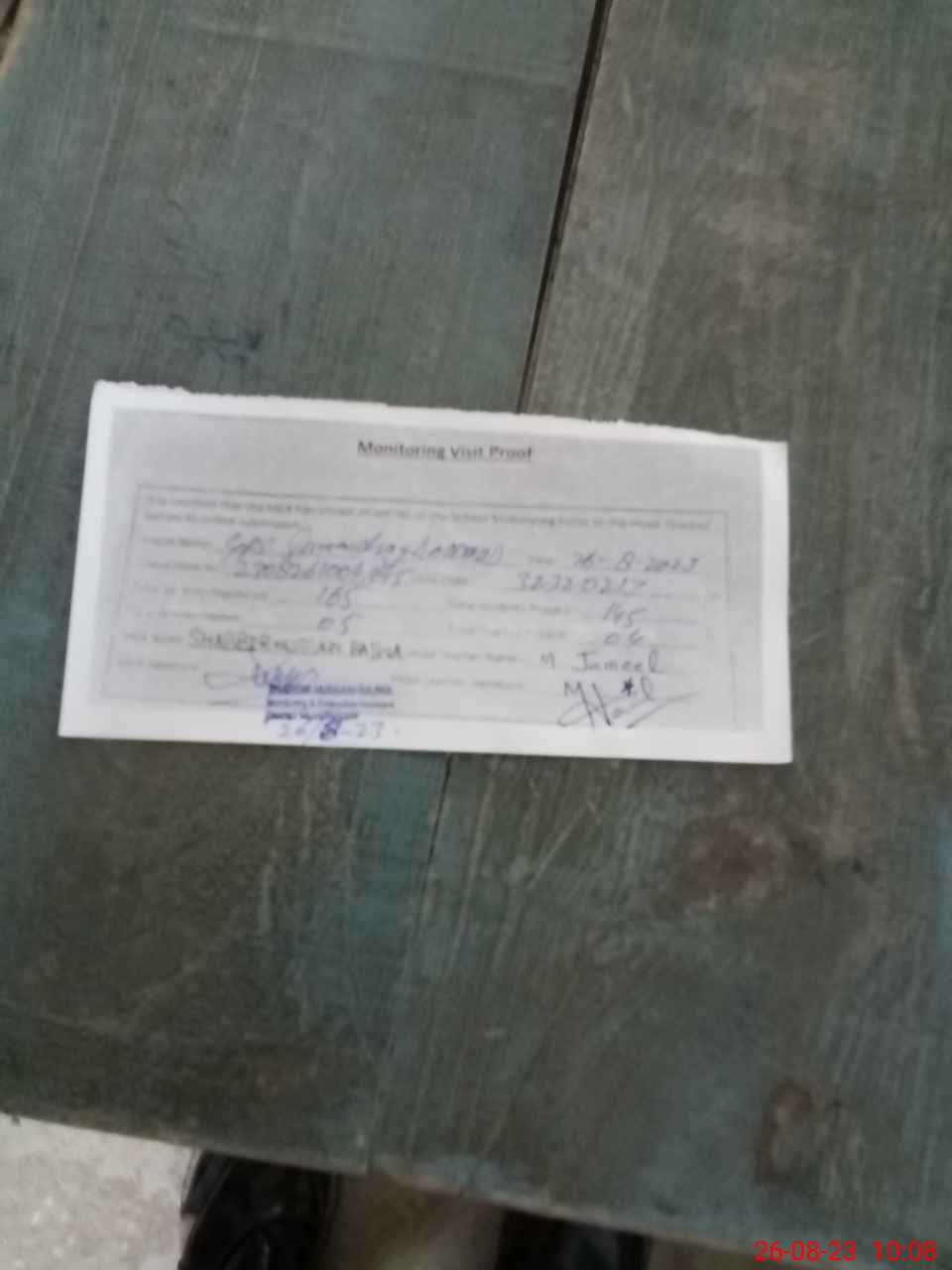 | Monitoring Date: 26-08-2023 | Start Time: 26-08-2023 09:41 AM | End Time: 26-08-2023 10:10 AM | Name of MEA: SH**** HU**** | |