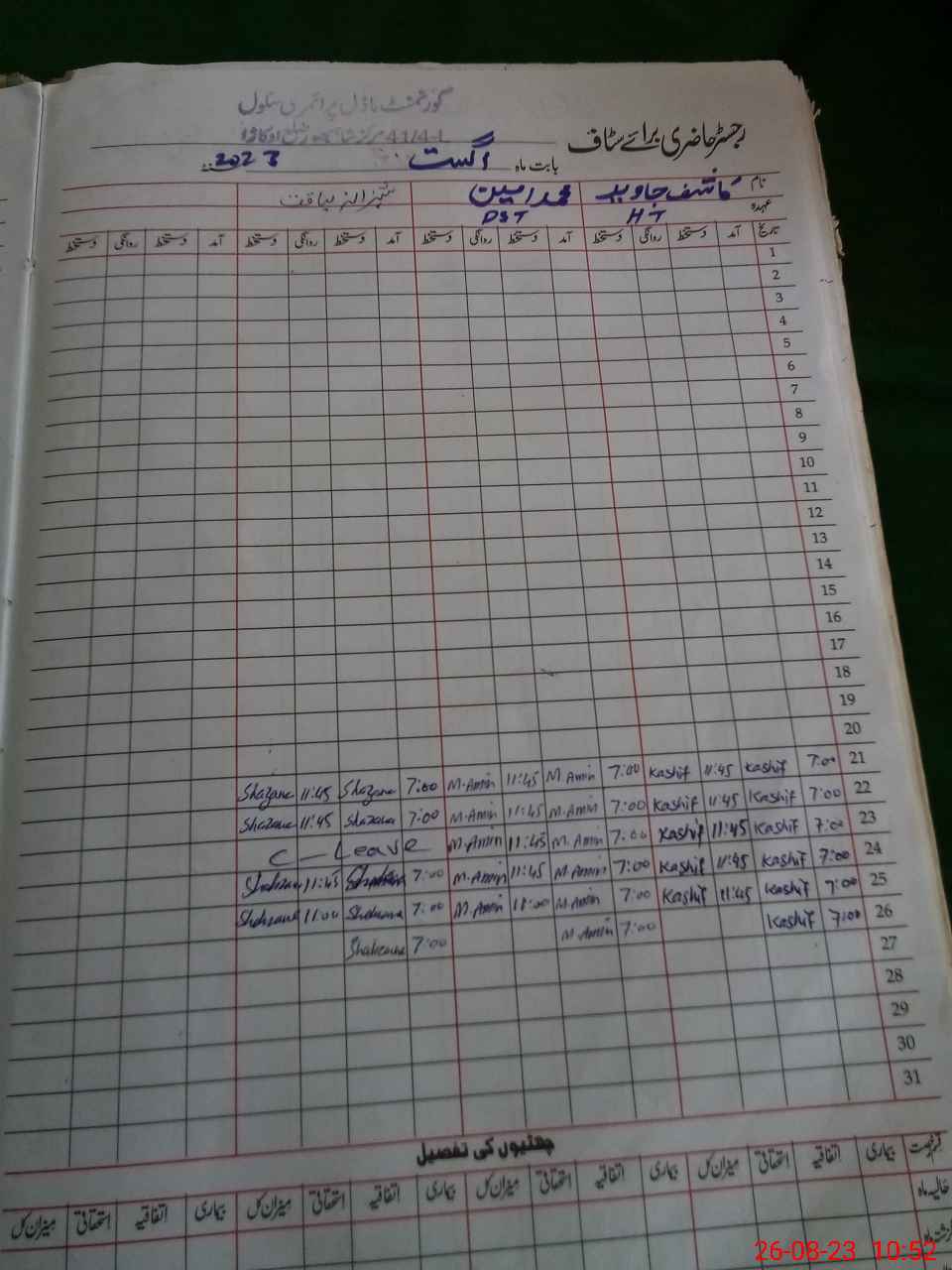 | CNIC | Full Name | Designation | R/C | Absence During Last Calender Month |