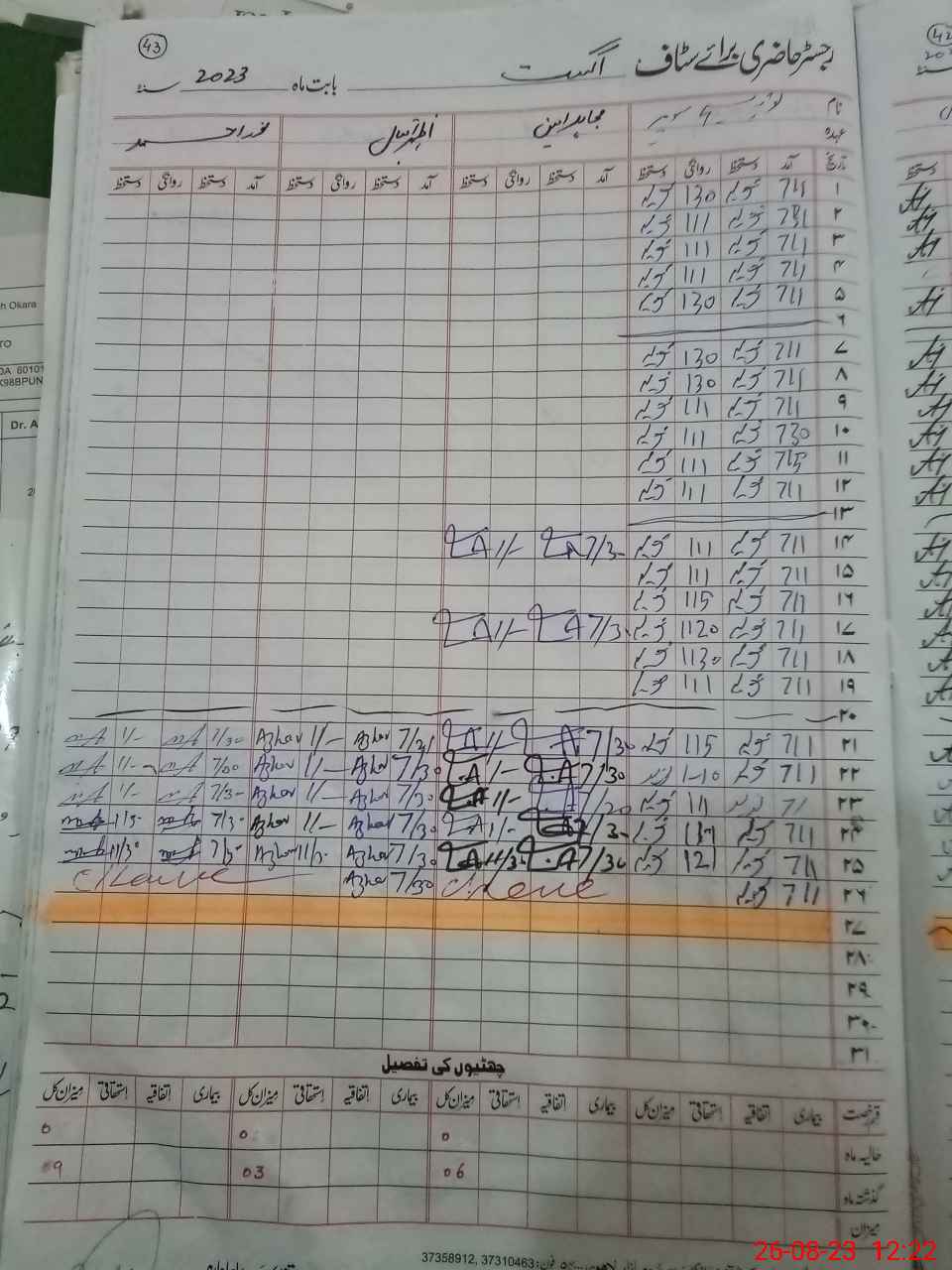 | CNIC | Full Name | Designation | R/C | Absence during last cal. month |