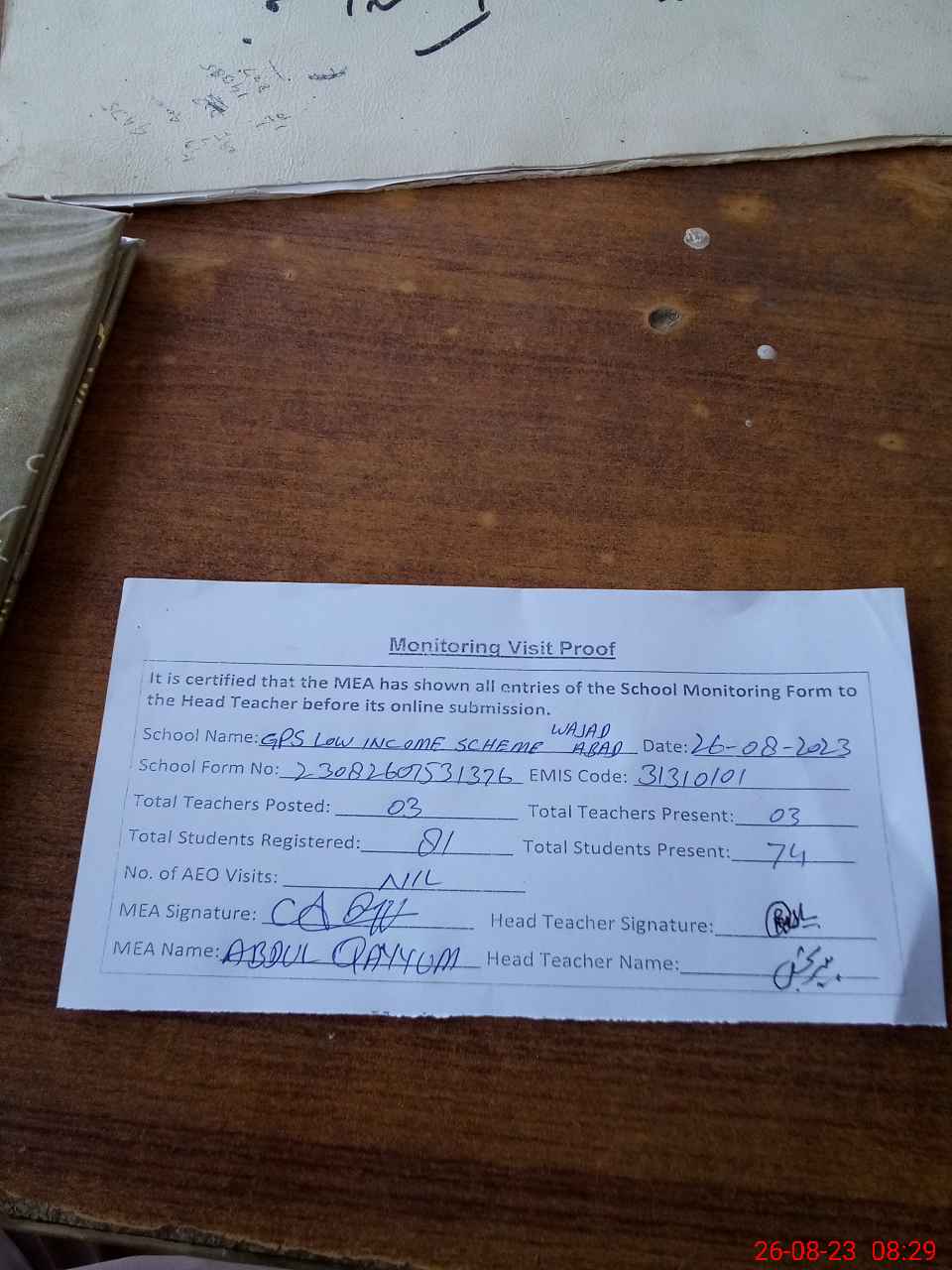 | EMIS Code: 31310101 | Name of School: GPS LOW INCOME SCHEME BASTI WAJID ABAD | |||