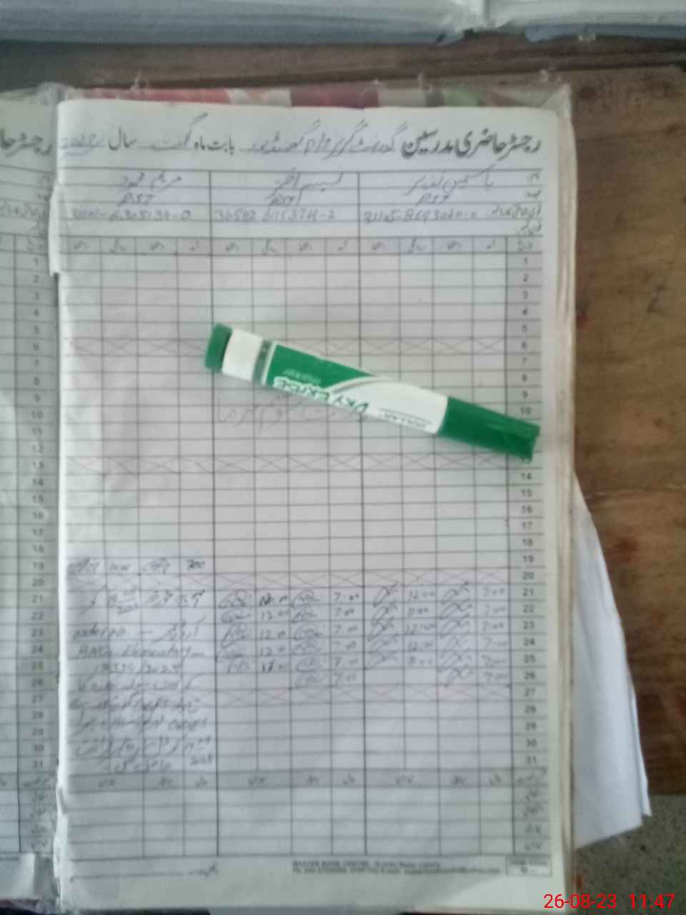 | CNIC | Full Name | Designation | R/C | Absence During Last Calender Month |