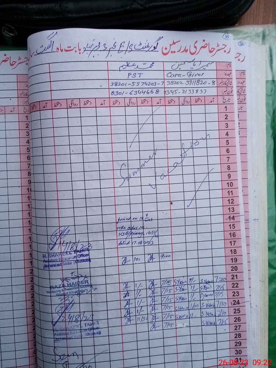 | Name: Am**** Al**** Kh**** Designation: (School Headmaster's/Headmistress's) Sst Phone/Cell Number: 03**** |