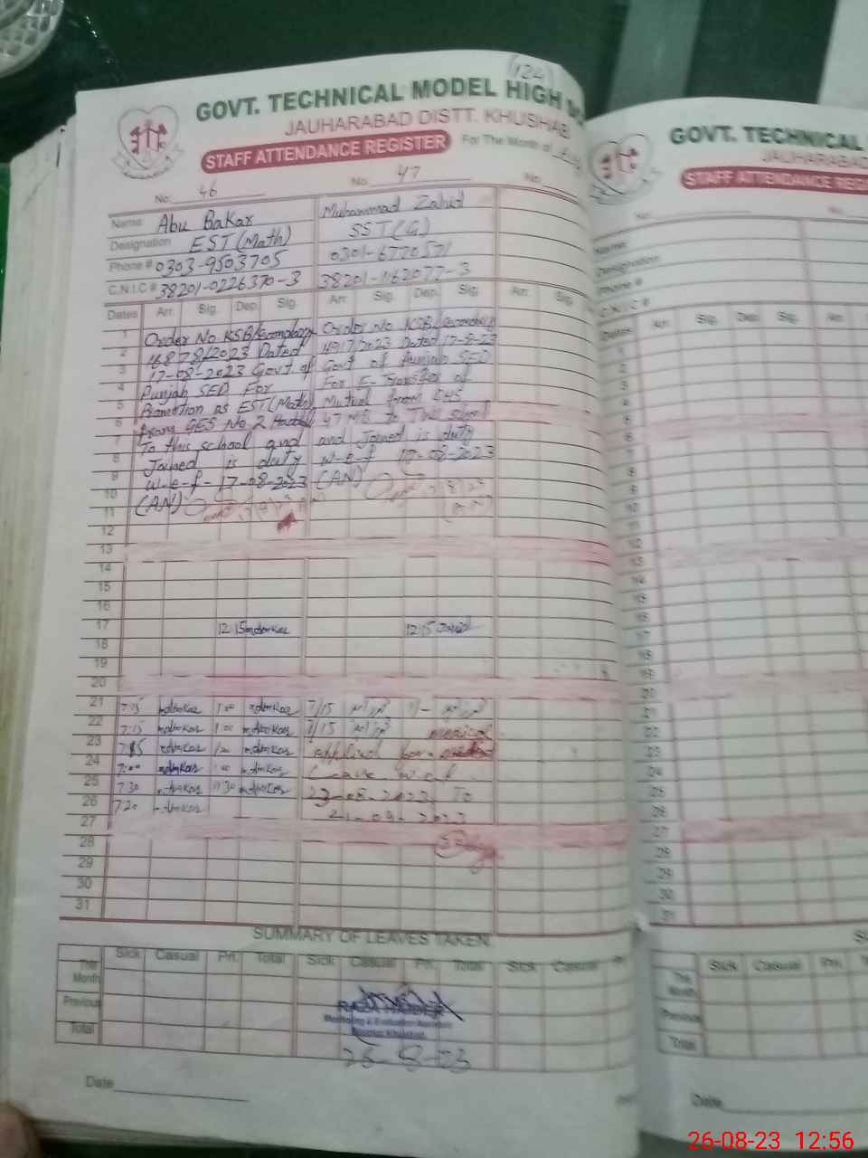 | Name: Mu**** Am**** Gu**** Designation: (School Headmaster's/Headmistress's) I/C Principal Phone/Cell Number: 03**** |