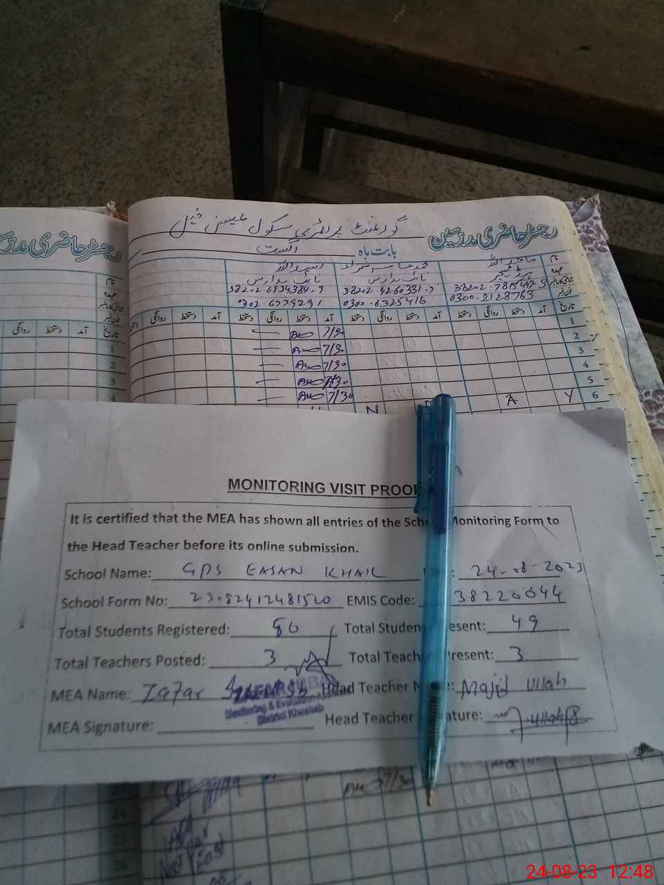 | EMIS Code: 38220044 | Name of School: GPS EASAN KHAIL | |||