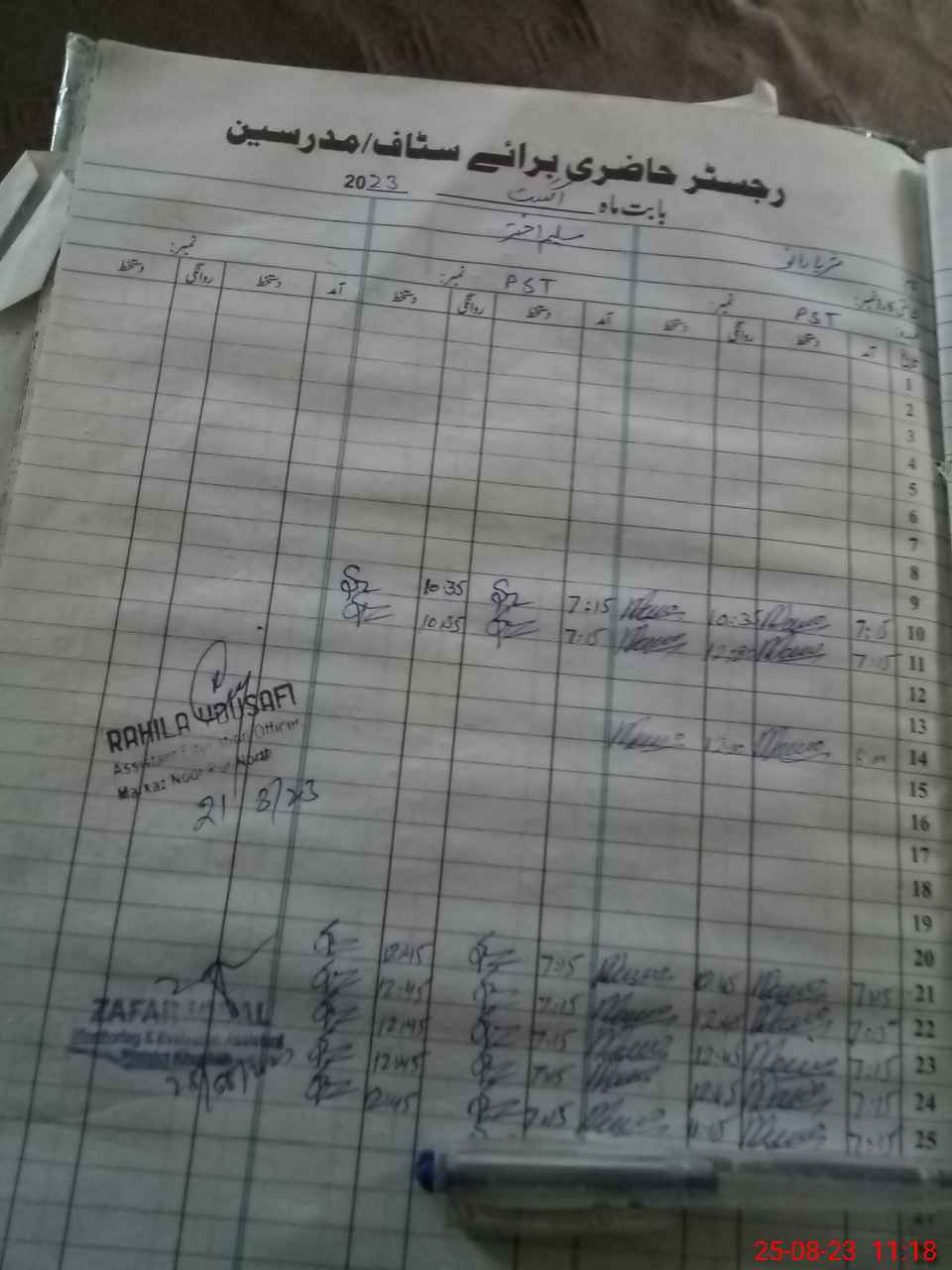| CNIC | Full Name | Designation | R/C | Absence During Last Calender Month |
