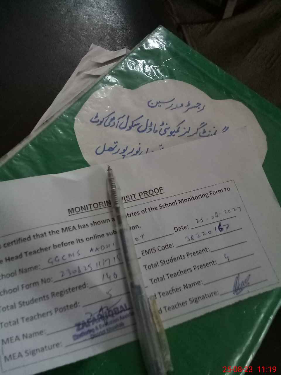 | Attendance Register | Head Teacher | MEA with School | Visit Proof |