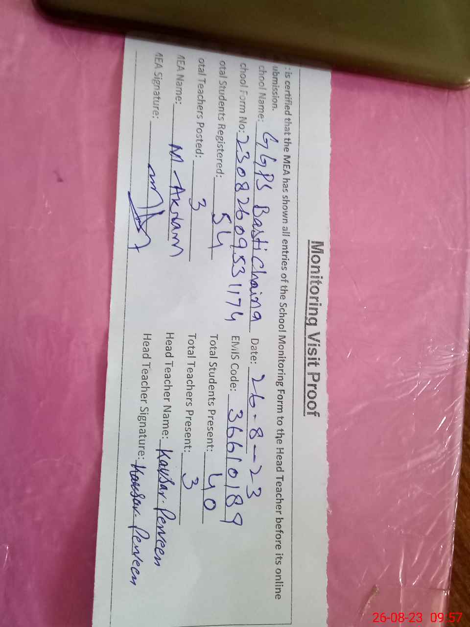 | EMIS Code: 36610189 | Name of School: GGPS BASTI CHAINA MOZO WAHI CHANI KHAN | |||