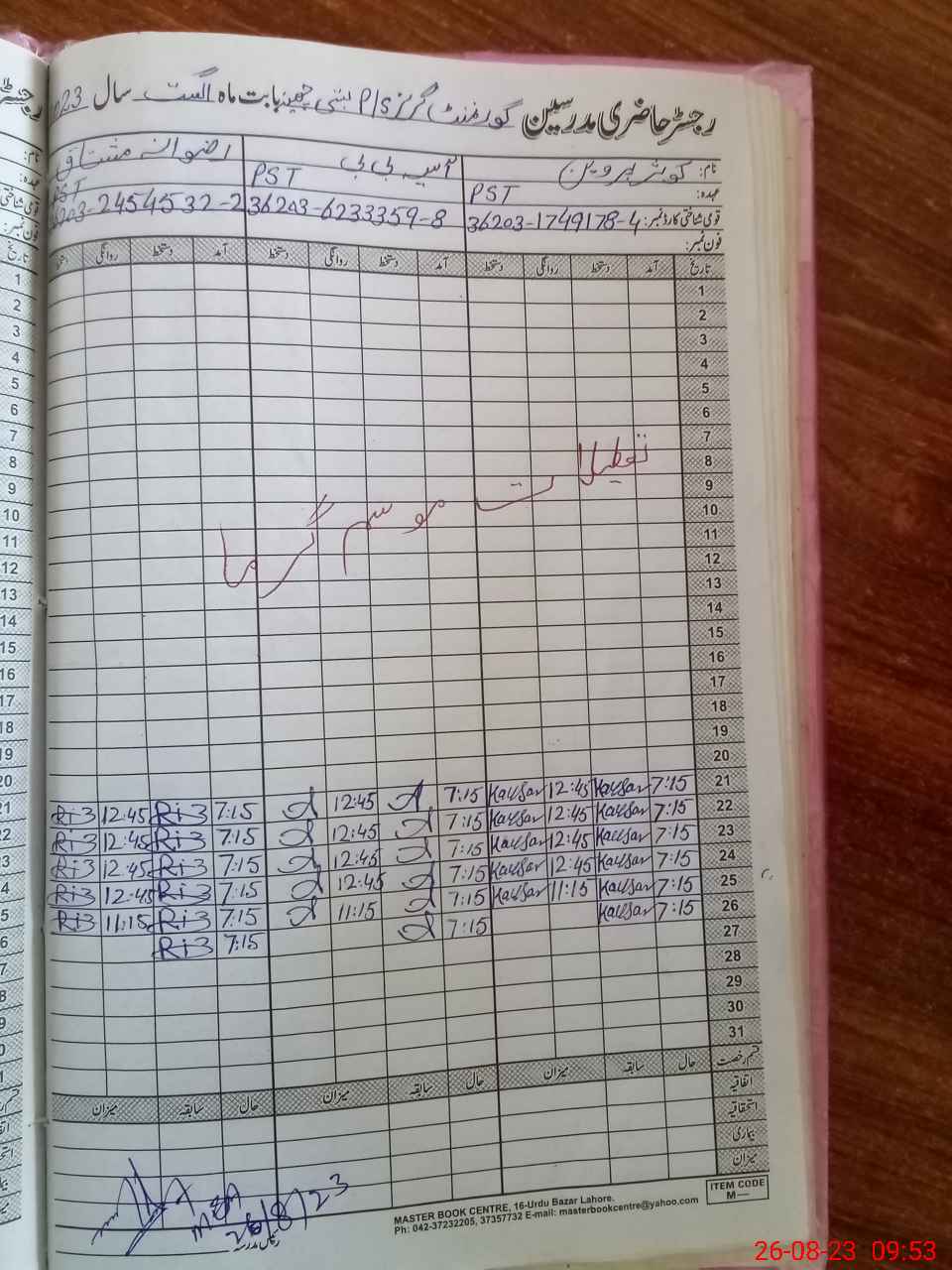 | Name: Ka**** Pe**** Designation: (School Headmaster's/Headmistress's) PST Phone/Cell Number: 03**** |