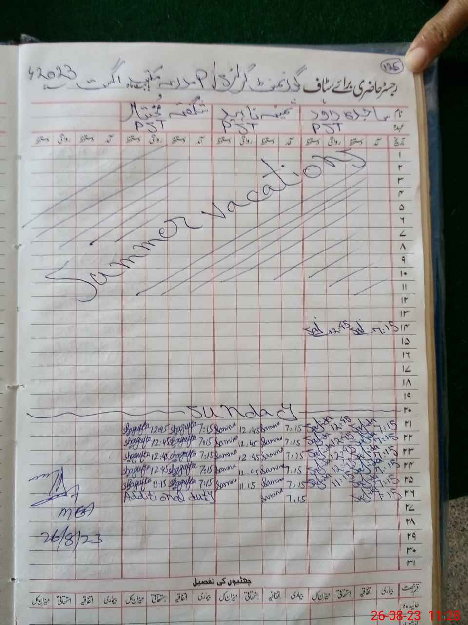 | Monitoring Date: 26-08-2023 | Start Time: 26-08-2023 10:58 AM | End Time: 26-08-2023 11:41 AM | Name of MEA: MU**** AK**** | |