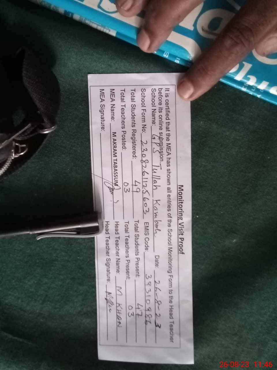 | EMIS Code: 39310986 | Name of School: GPS TULLAH KAMBOH | |||