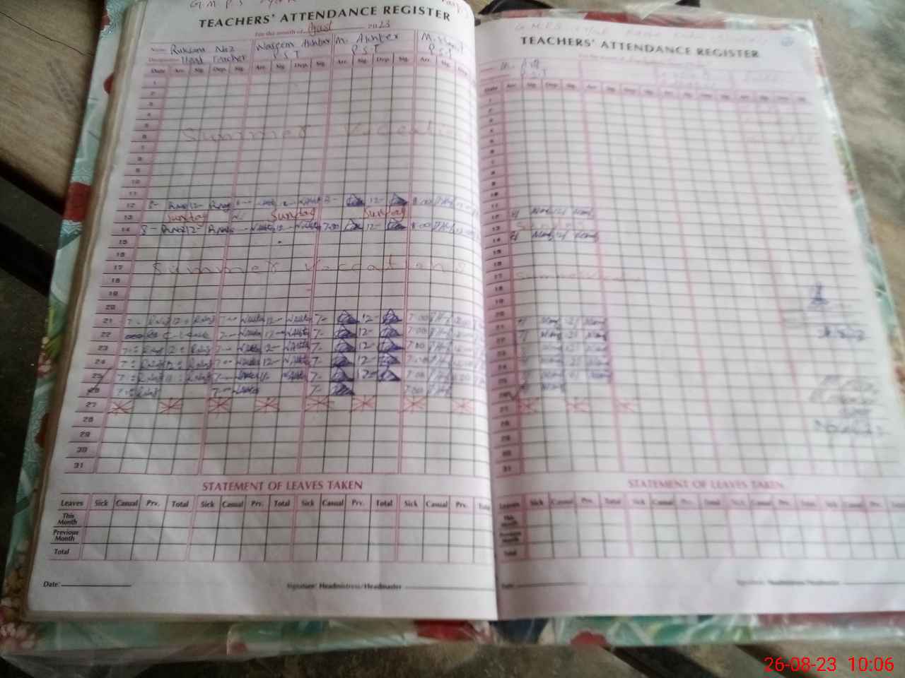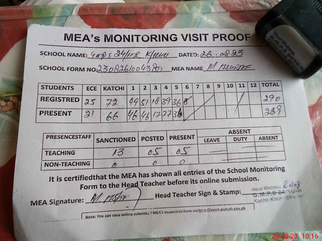 | Attendance Register | Head Teacher | MEA with School | Visit Proof |