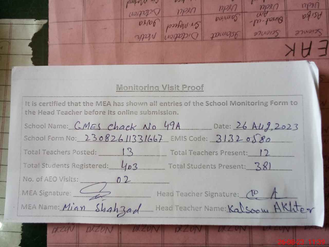 | EMIS Code: 31320580 | Name of School: GMES CHAK NO.49/A | |||