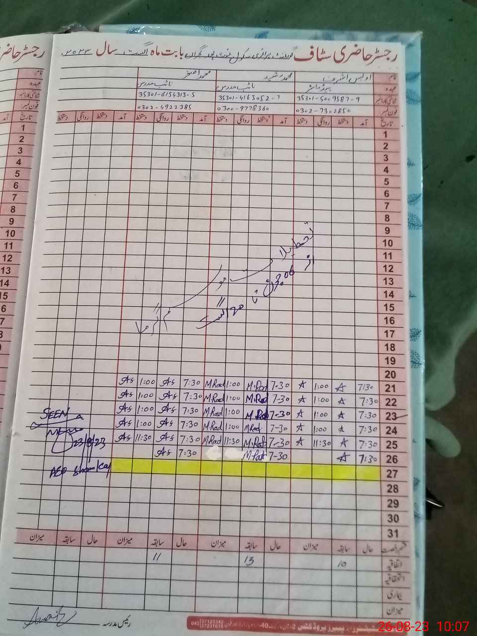 | Name: Mu**** Ak**** Designation: (School Headmaster's/Headmistress's) PST Phone/Cell Number: 03**** |
