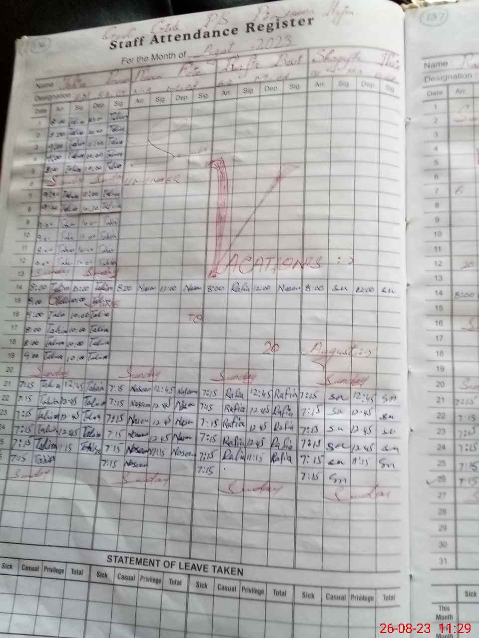 | Leave | Duty | Absent | Maternity | Medical | Ex- Pak |