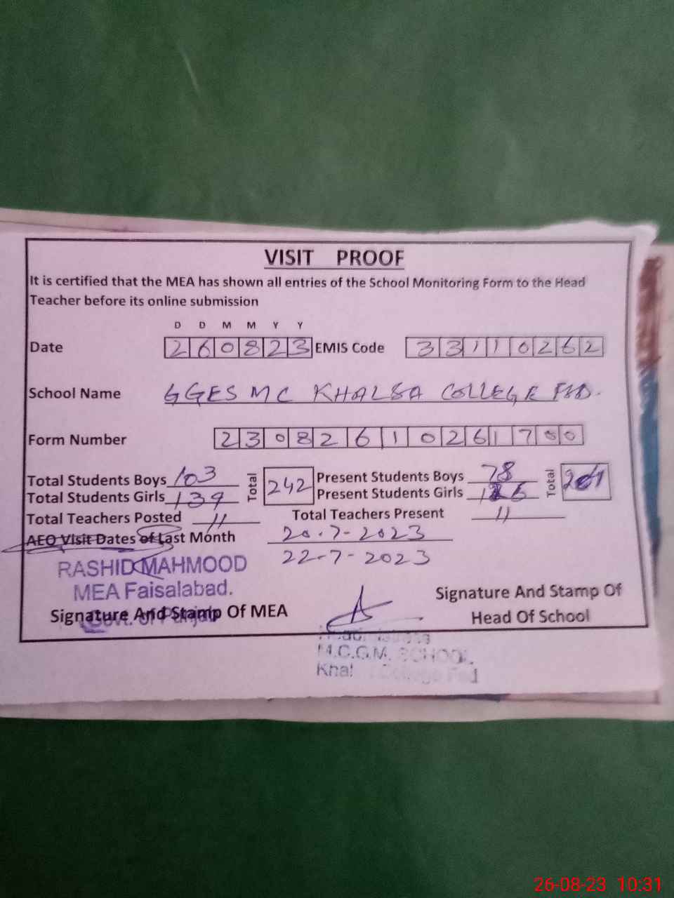 | EMIS Code: 33110262 | Name of School: GGES MC KHALASA COLLEGE | |||