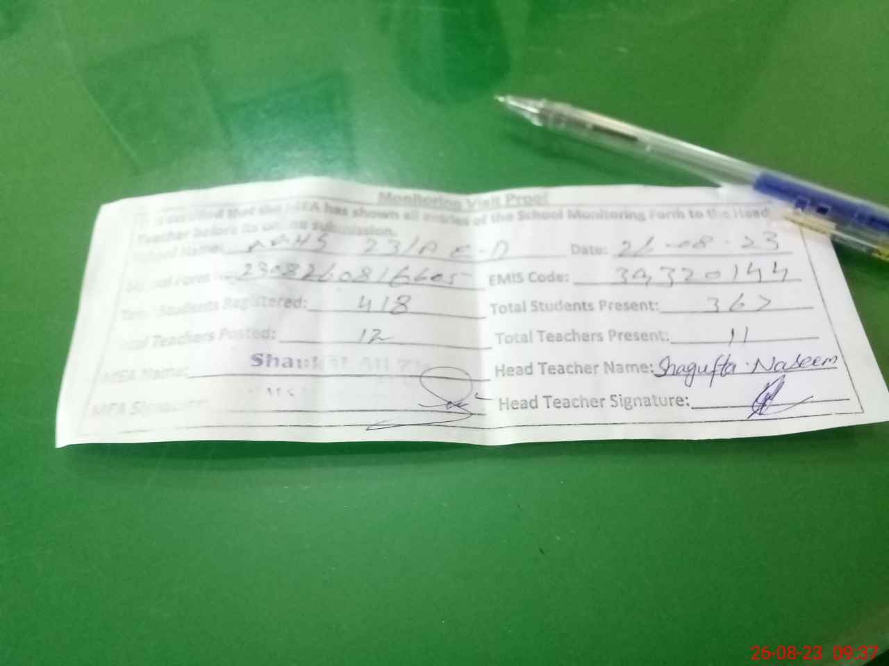 | EMIS Code: 39320144 | Name of School: GGHS 23-A/G.D | |||