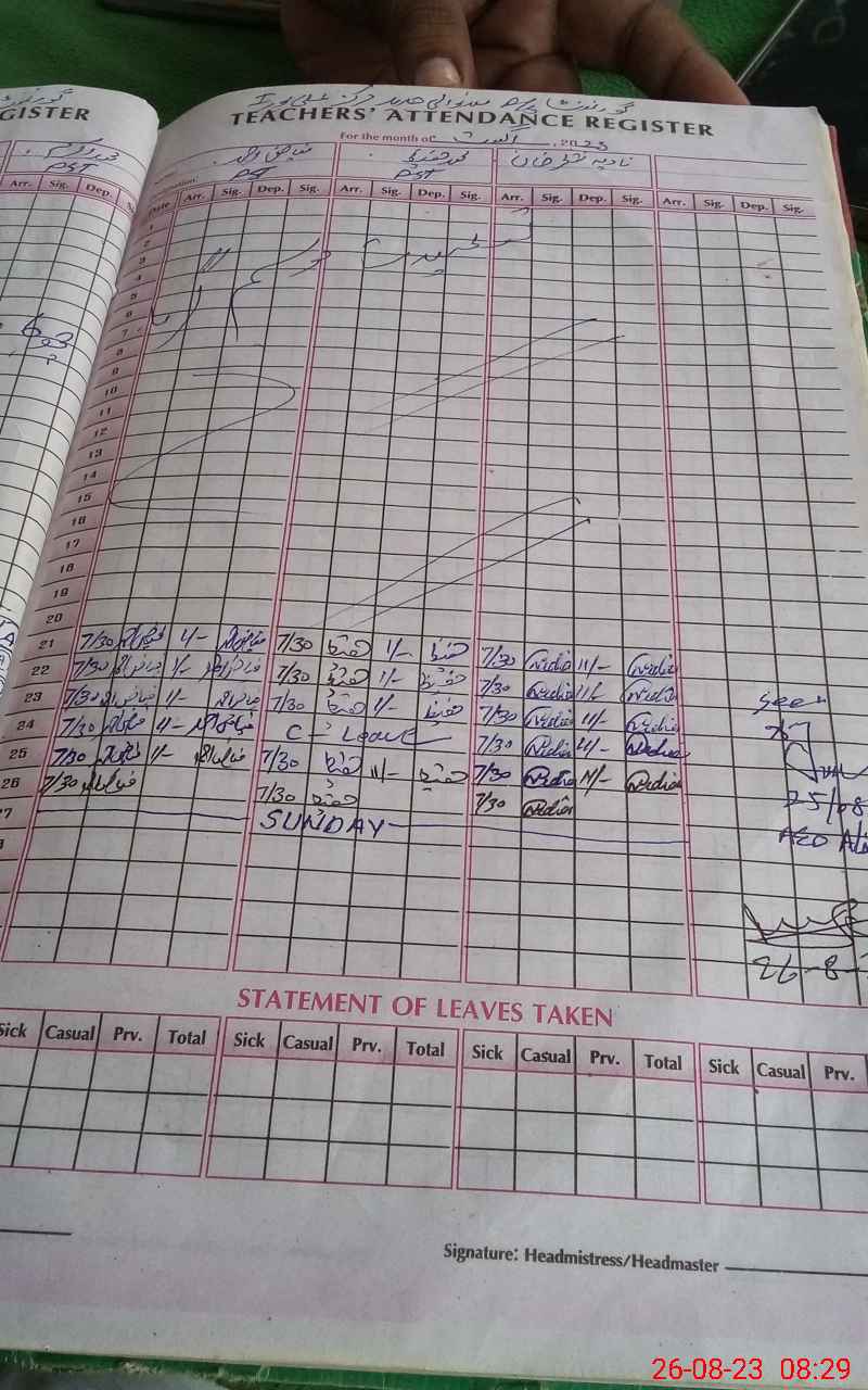 | Name: FI**** AH**** Designation: (School Headmaster's/Headmistress's) PST Phone/Cell Number: 03**** |