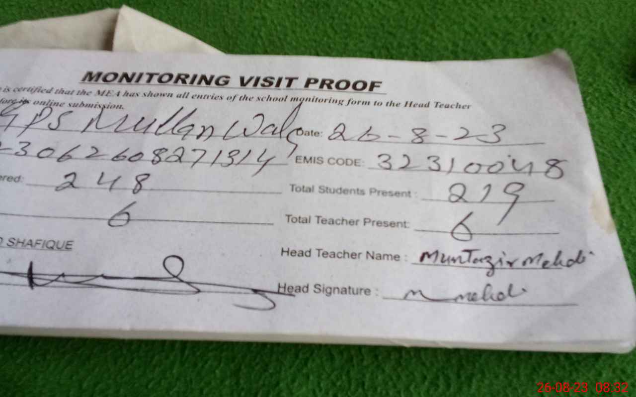 | EMIS Code: 32310048 | Name of School: GPS MULLAN WALI JADEED | |||