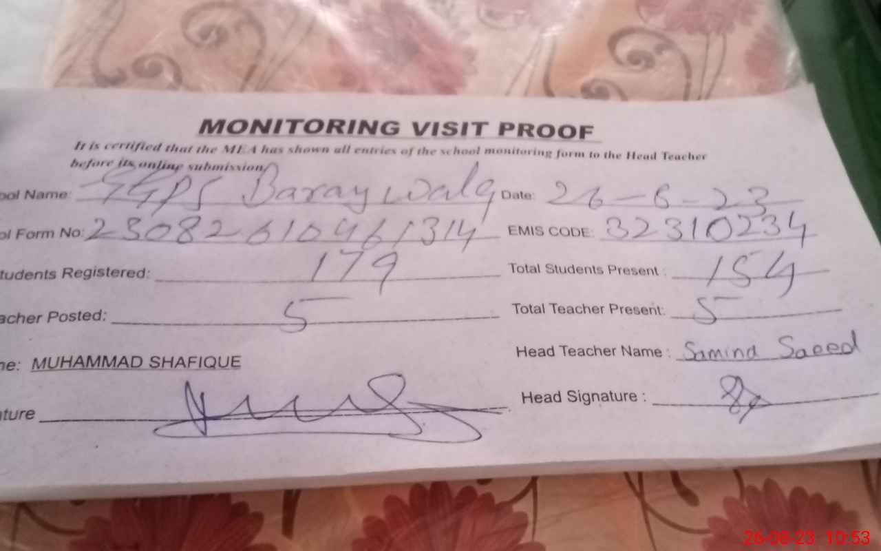| EMIS Code: 32310234 | Name of School: GGPS BAHARAY WALA | |||