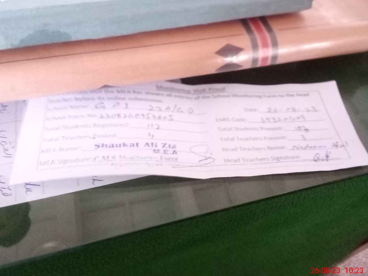 | EMIS Code: 39320409 | Name of School: GPS CHAK NO. 23-A/G.D | |||