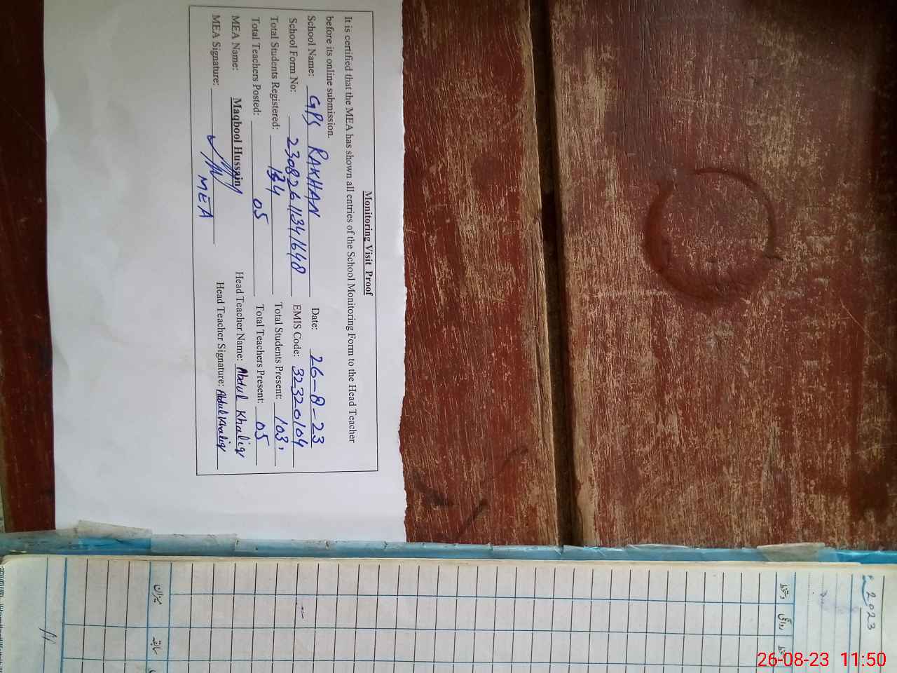 | Attendance Register | Head Teacher | MEA with School | Visit Proof |