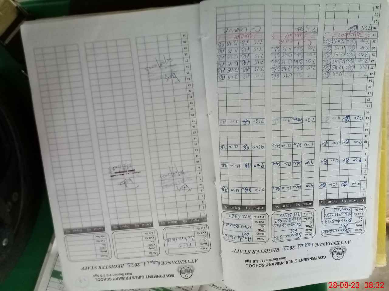 | CNIC | Full Name | Designation | R/C | Absence During Last Calender Month |