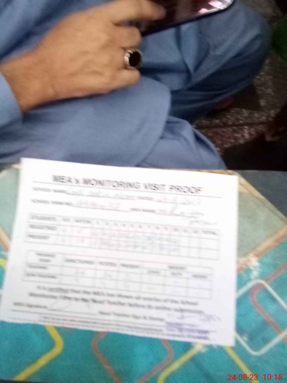 | Monitoring Date: 24-08-2023 | Start Time: 24-08-2023 09:27 AM | End Time: 24-08-2023 10:20 AM | Name of MEA: Ra**** Ha**** | |