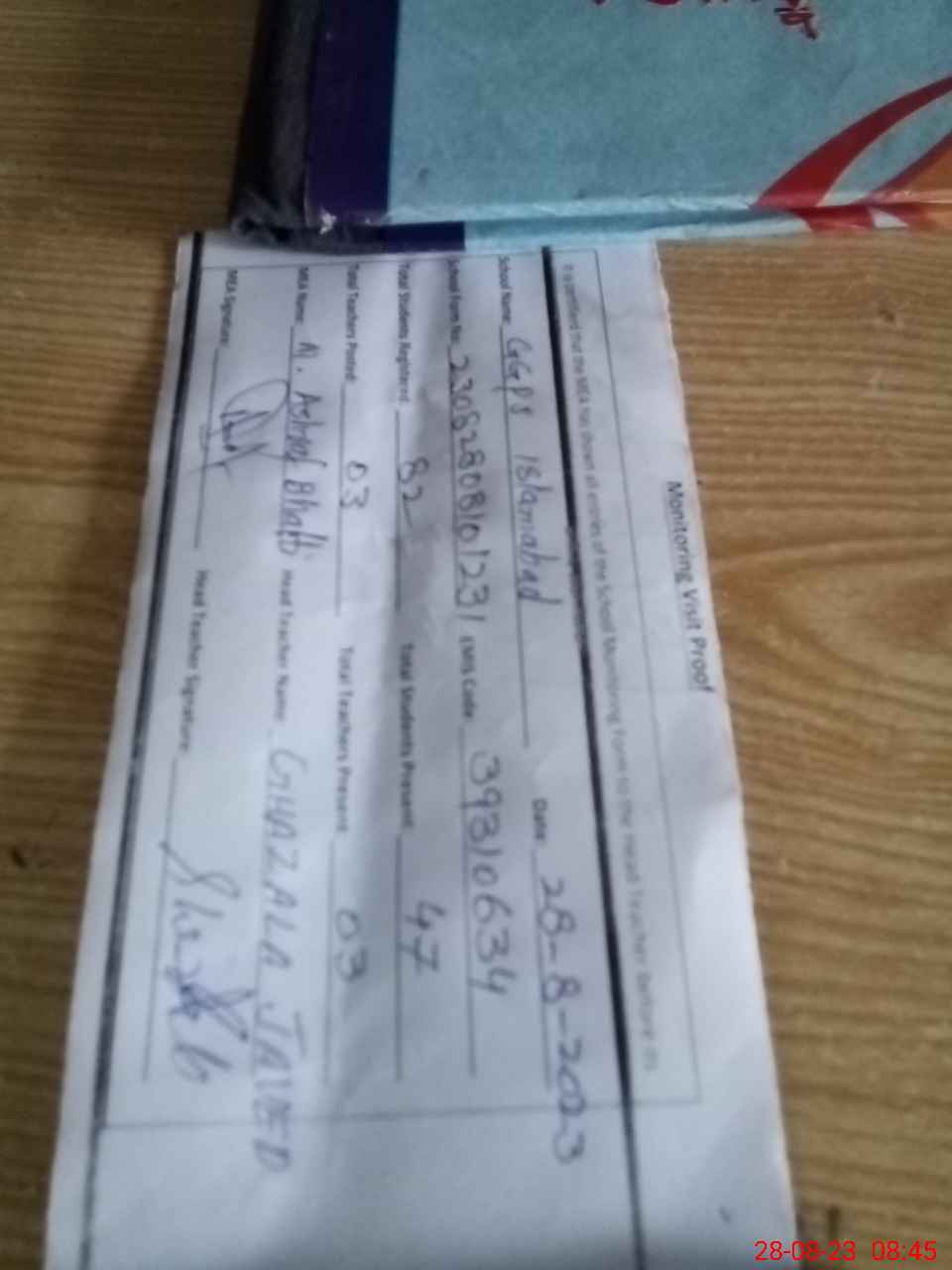 | Attendance Register | Head Teacher | MEA with School | Visit Proof |