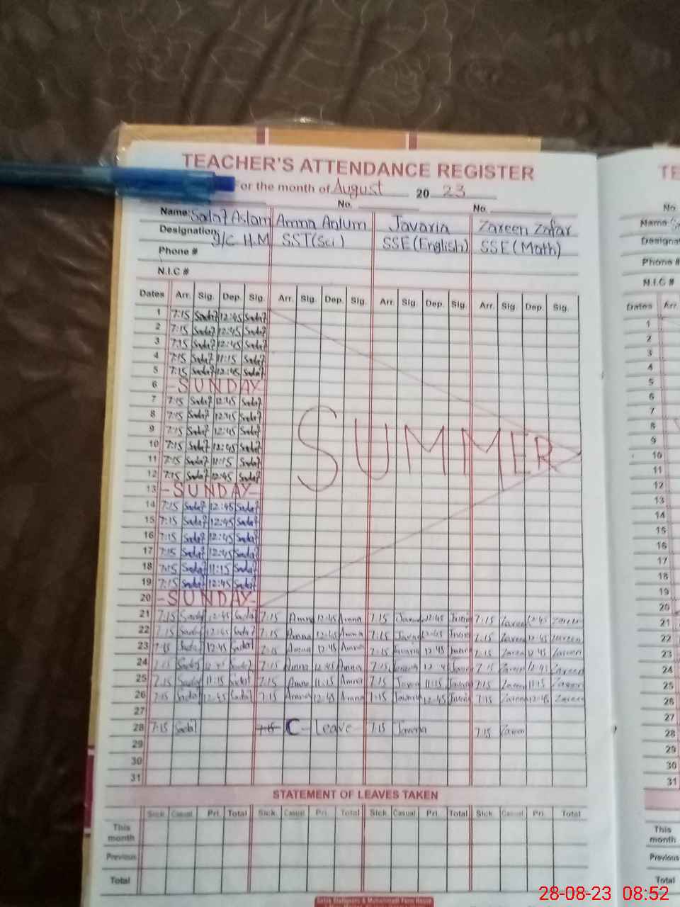 | 33**** | Aa**** An**** | SST | Regular | 0 | 0 | 0 | 0 | 0 | 0 | 0 | 0 | 0 | Casual |