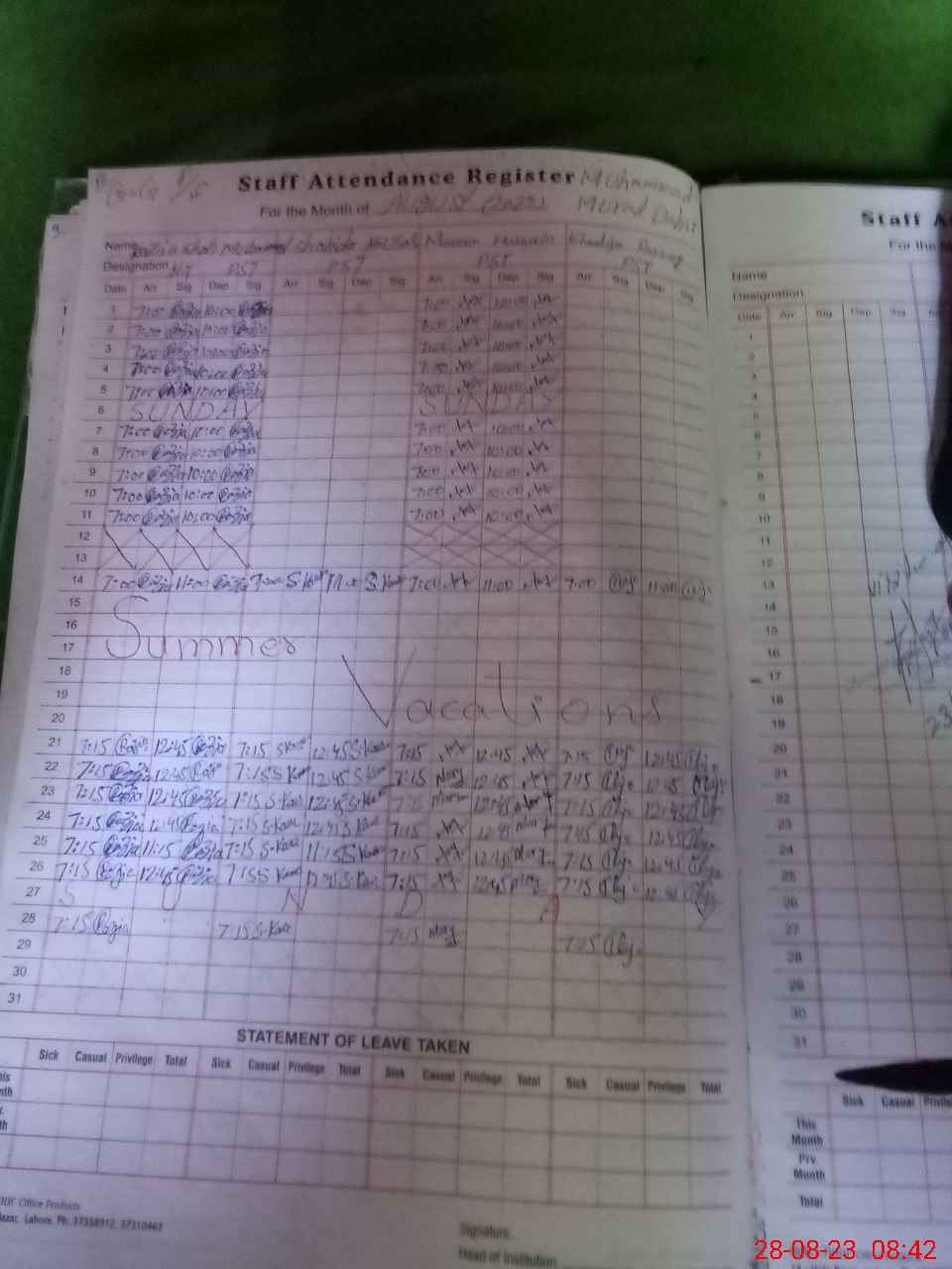 | Leave | Duty | Absent | Maternity | Medical | Ex- Pak |