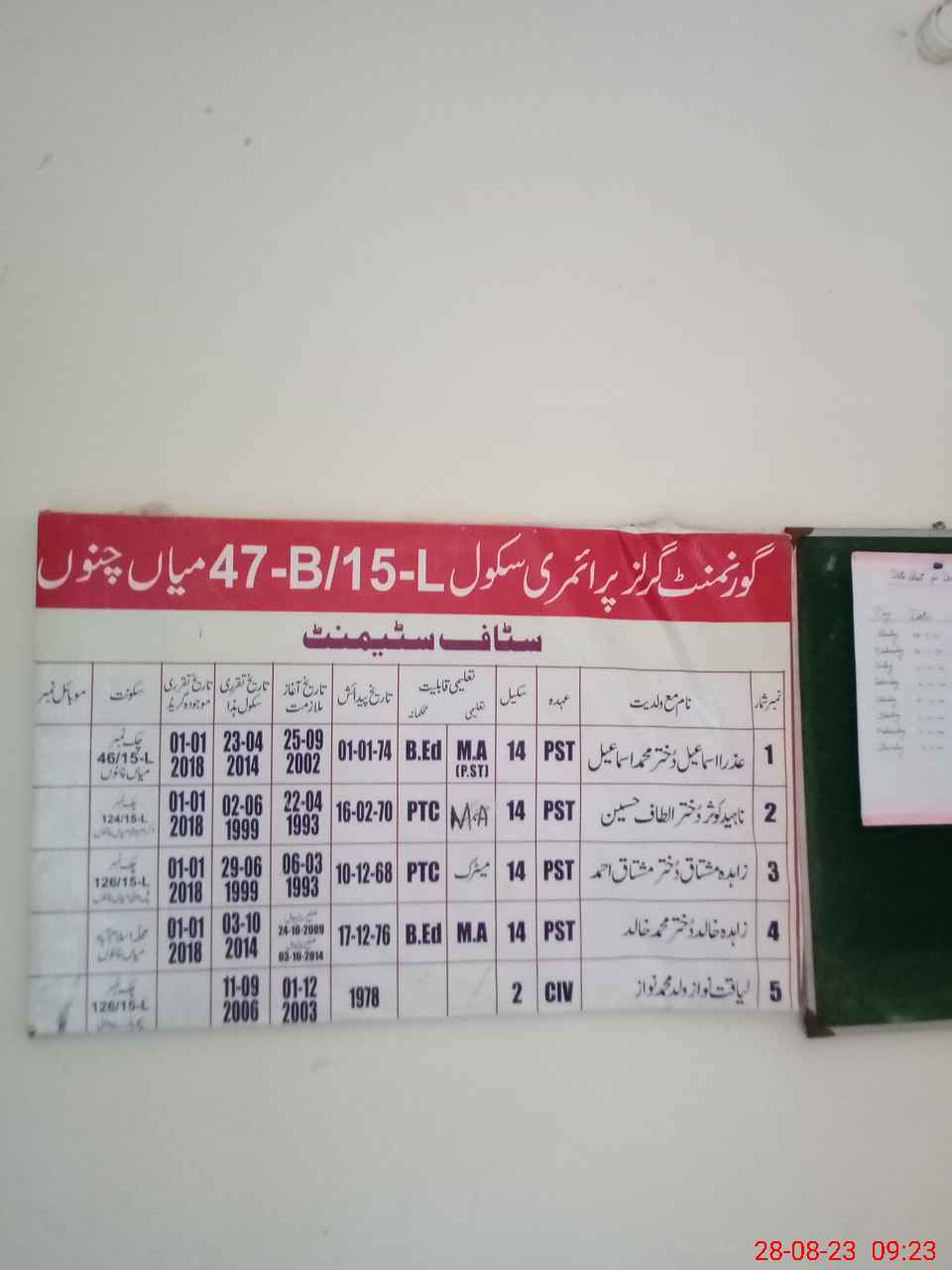| EMIS Code: 36430339 | Name of School: GGPS 47-B/15-L, MIAN CHANNU | |||